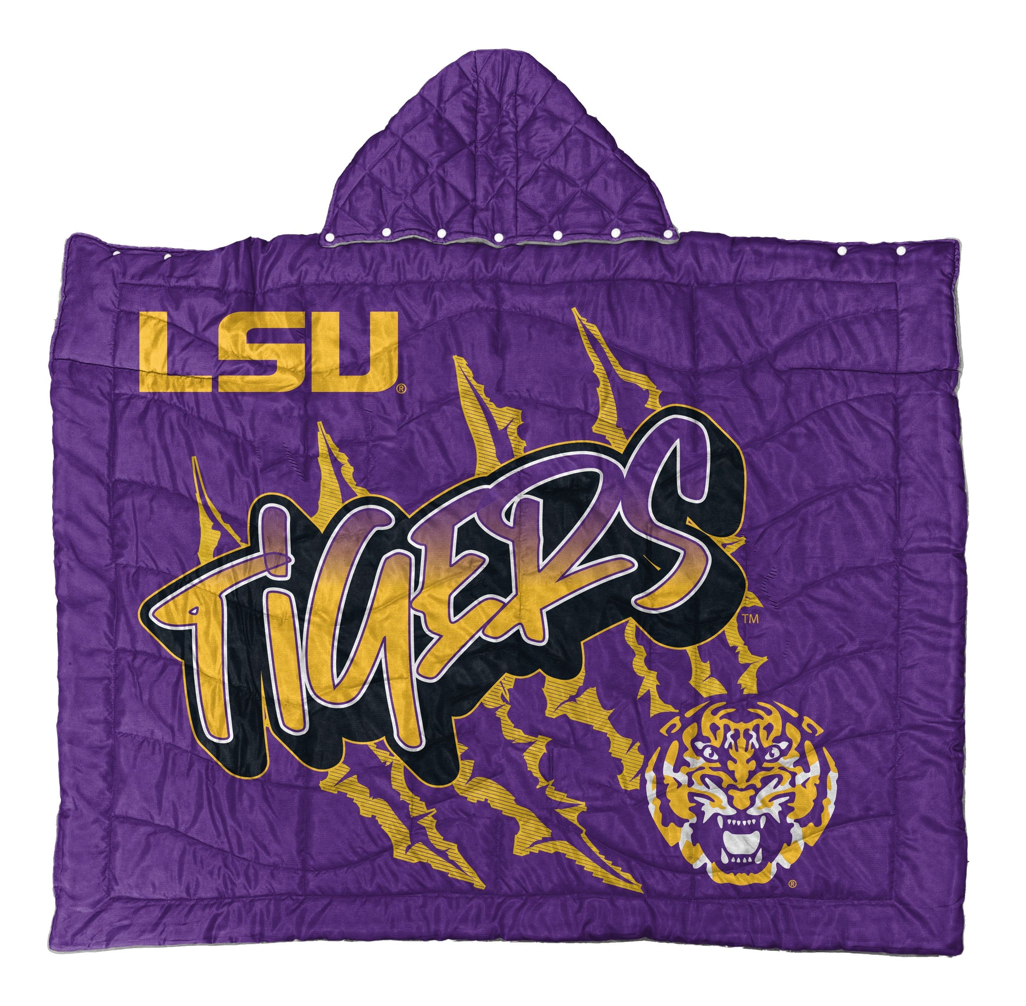 Wrap yourself in warmth and pride with this Pegasus Sports Local Wearable Hero Cape. Measuring 54" x 72", this ultra-comfortable wearable blanket features a bold graphic design, cozy hood, and button clasps for easy wear. Whether you're cheering from the couch or the bleachers, it’s the perfect way to stay warm and show your spirit.