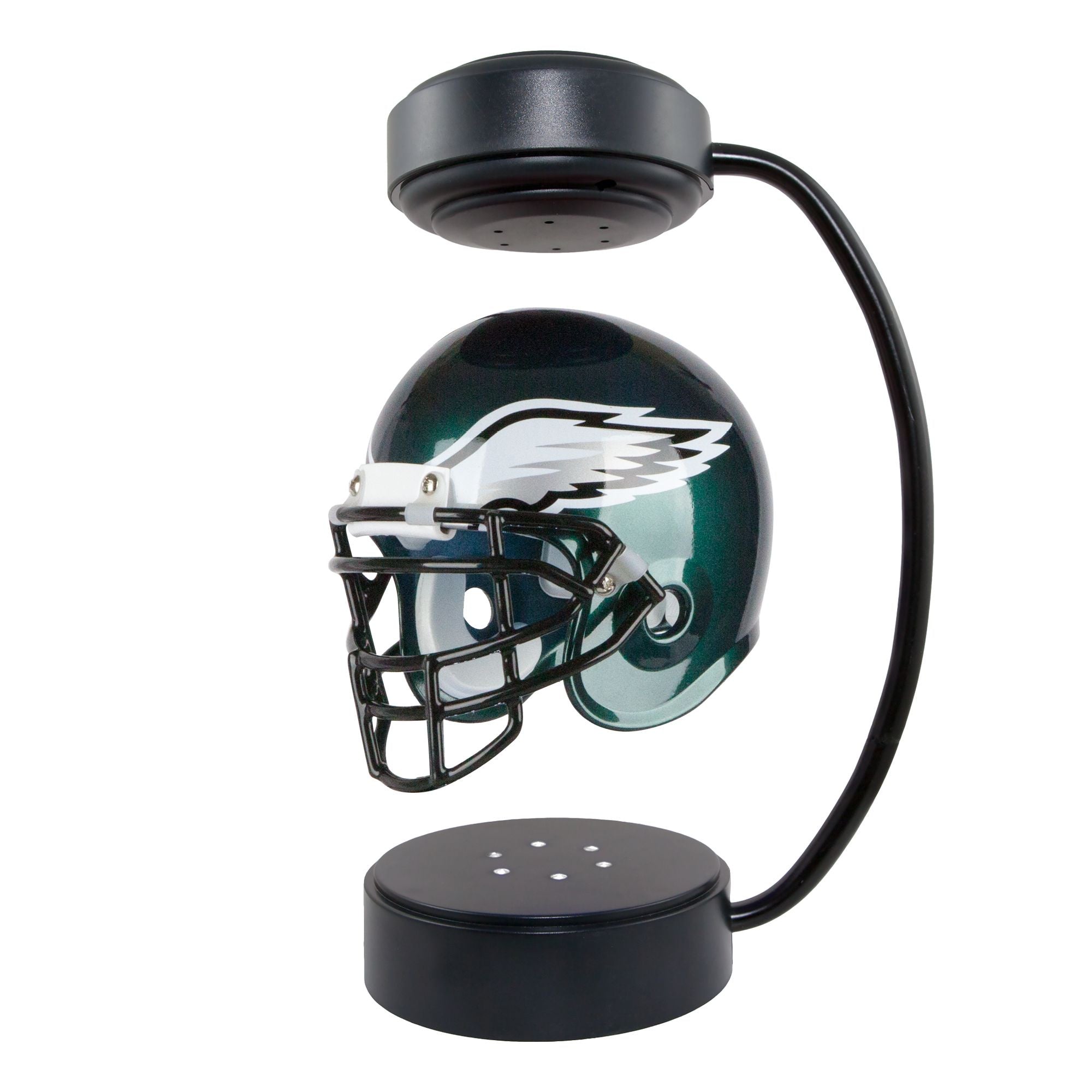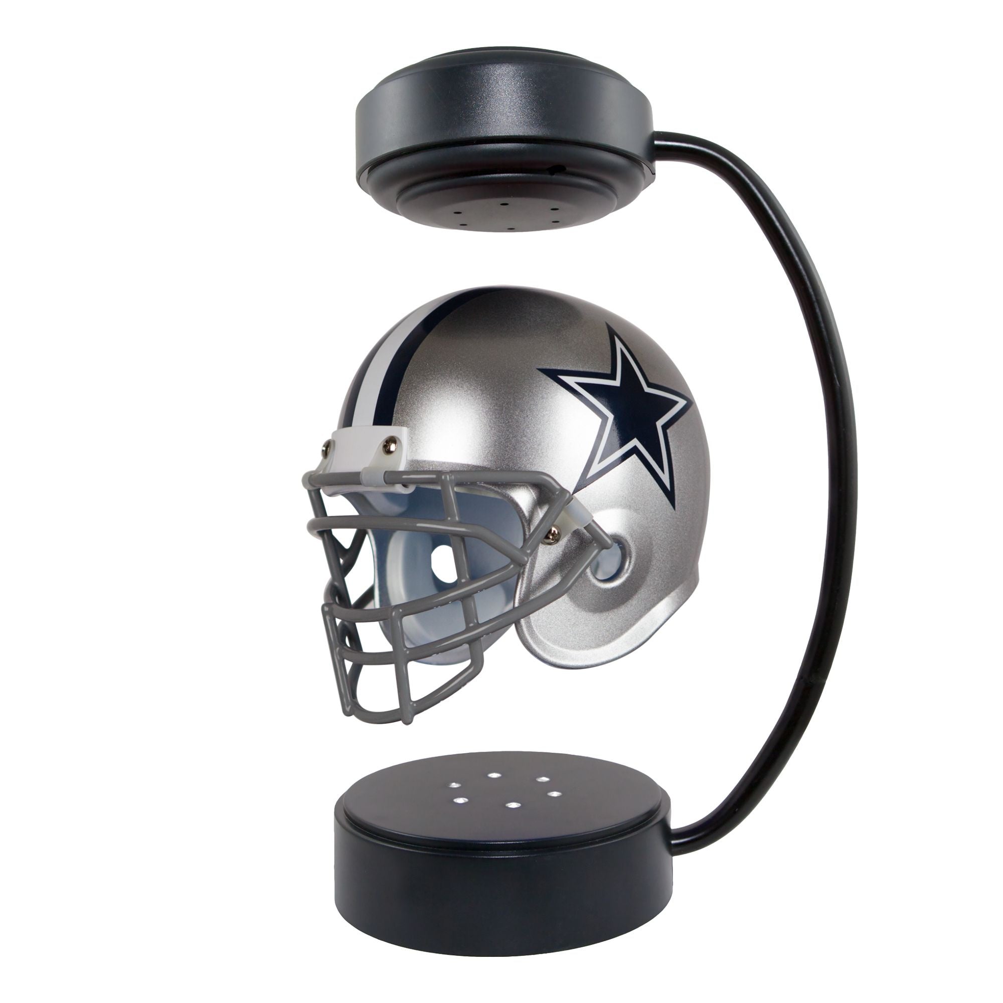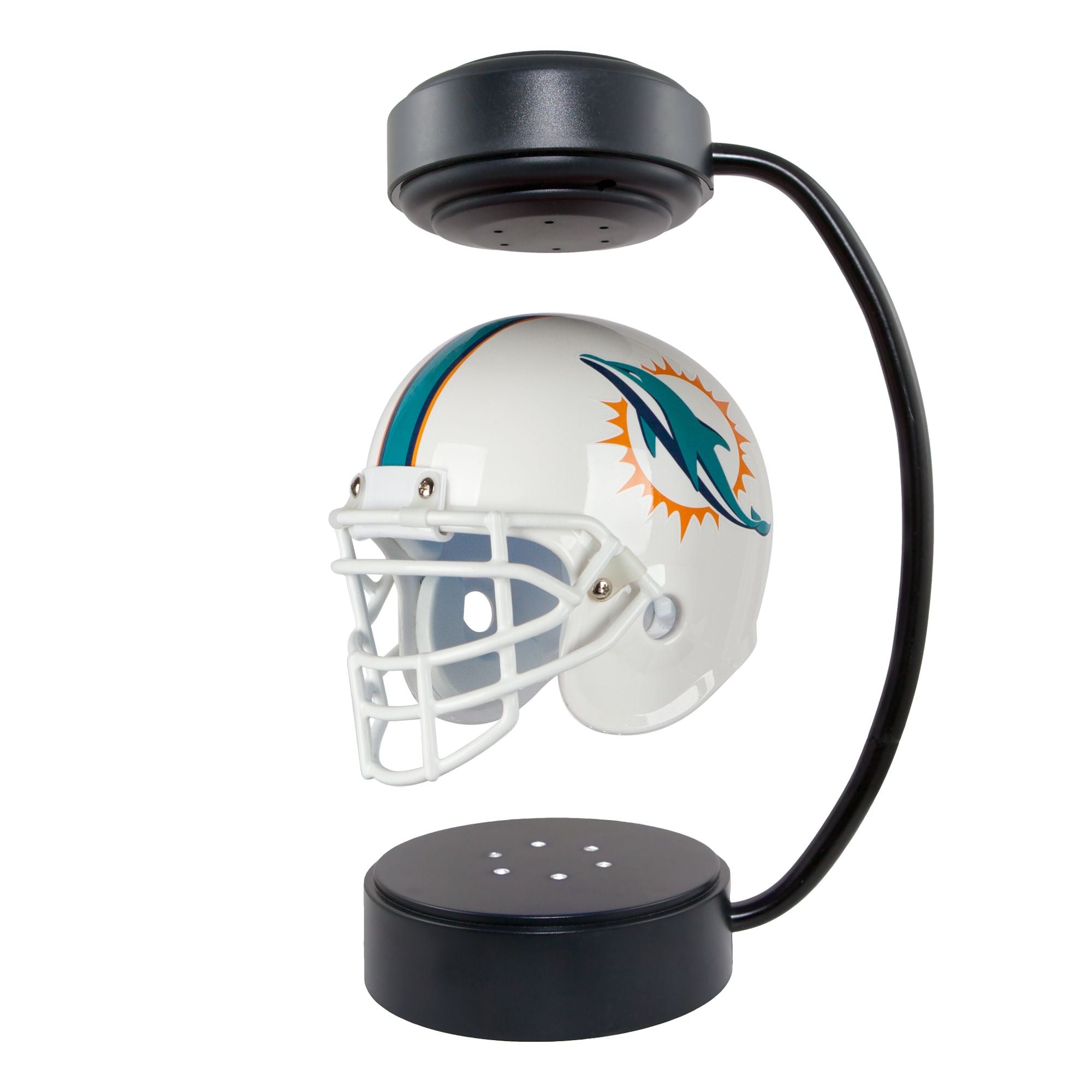 This Hover Helmet is decorated with vibrant team colors and officially licensed logo. Perfect for fans of any age, it is perfect for your desk, coffee table or man cave, or can be used as a night light. The high quality 1/2 scale LED lighting at the base projects onto the helmet as it hovers and continuously rotates.